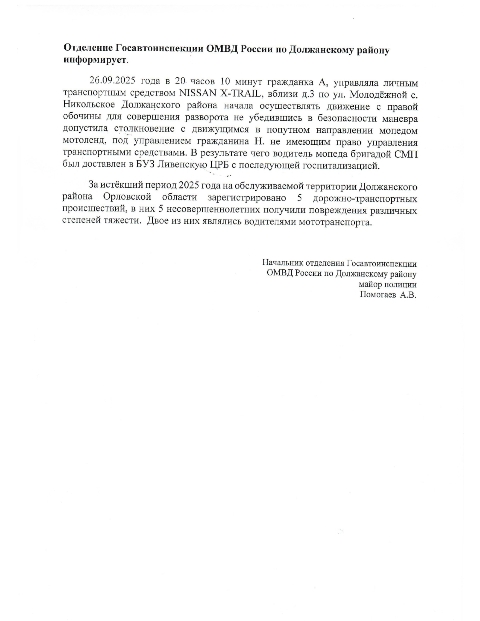 Отделение Госавтоинспекции ОМВД России по Должанскому району информирует