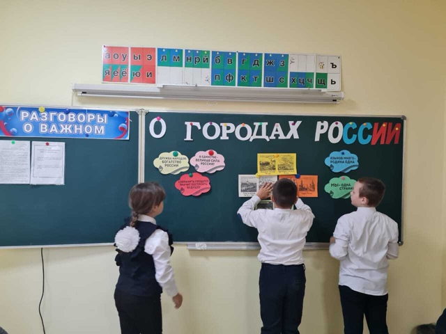 В рамках цикла «Разговоры о важном» у учащихся прошло занятие, приуроченное ко Дню народного единства. Тема встречи — «О городах России».