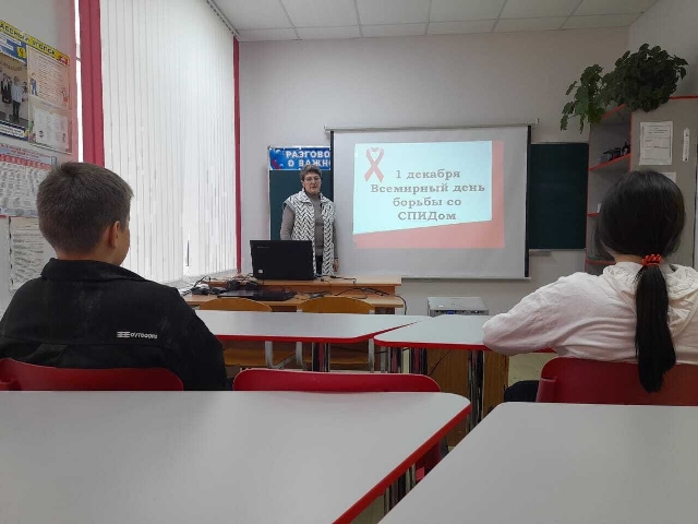 Педагог-психолог школы, Астанина Л.Н., рассказала ребятам о профилактике и лечении такого серьёзного заболевания, как ВИЧ-инфекция. Школьники получили представления о распространенности болезни в мире, способах её передачи, современных методах диагностики и возможностях современной медицины в лечении и профилактике этого заболевания.